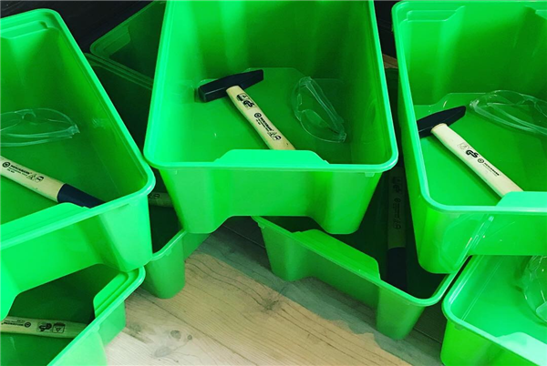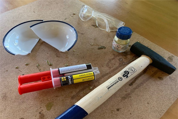 Eerst zet je de veiligheidsbril op om je ogen te beschermen en dan tik je zachtjes met de hamer op bijvoorbeeld een kom. Dit is best spannend, want eigenlijk mag je toch niets kapotslaan met een hamer? Als de kom in scherven ligt, gaan jullie samen alle stukken heel voorzichtig bij elkaar zoeken, net als een puzzel. Net als de Japanse pottenbakkers maken jullie een hele mooie kom met gouden lijnen.