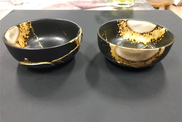 En niet alleen de scherven worden gelijmd met goudpoeder, ook jullie band wordt nog verder versterkt met een mooie gouden glans.