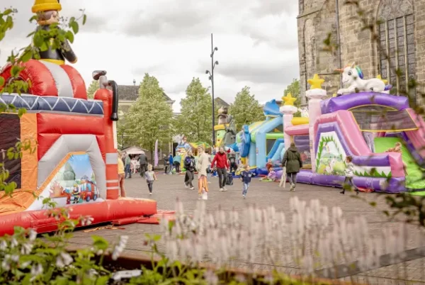 Midden op het Plechelmusplein staat de tofste springkussens. De ideale plek, want ondertussen kan jij lekker op het terras zitten!