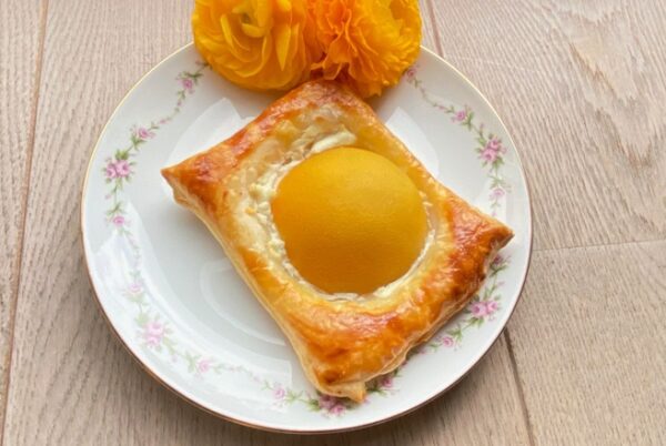 Oranje boven! Voor dit heerlijke oranje bladerdeeghapje heb je maar 4 ingrediënten nodig: geitenkaasspread naturel (of gewone geitenkaas), bladerdeeg, abrikozen uit blik en 1 ei. Smullen maar!