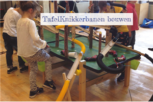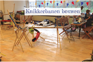 Samen met je vrienden en vriendinnen bouw je mooie, ingenieuze knikkerbanen. Banen zigzaggend of door elkaar heen, banen die samenkomen of juist splitsen. Met hindernissen, doorgangen of zelfs een looping. Hoe? Kartonnen goten schroeven jullie aan houten staanders. Daaraan kunnen weer buizen, bekers of trechters verbonden worden en zo bepalen jullie samen de weg van de knikker. De banen worden voortdurend getest, bijgesteld en zijn eigenlijk nooit af.