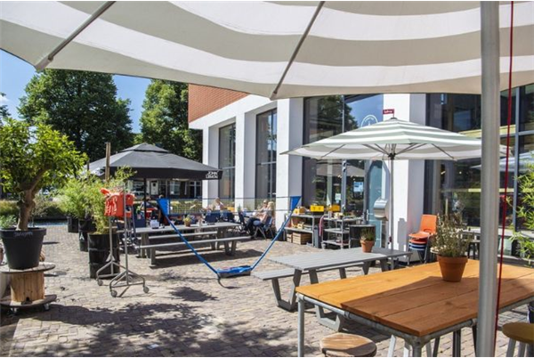 Op vijf minuten loopafstand van station Vaartsche Rijn vind je Camping Ganspoort. In het hippe, levendige café-restaurant kun je terecht voor koffie en croissants, tonic en taartjes, bitterballen en meer. Hier serveren ze ontbijtjes, lunch, borrelhapjes en diner!