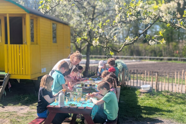 De workshops vinden plaats in de knalgele pipowagen!