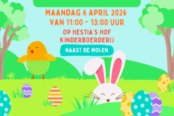 Op Hestia’s Hof Kinderboerderij liggen superveel paaseieren verstopt! Komen jullie ze zoeken? Neem je eigen mandje mee en ga op pad.