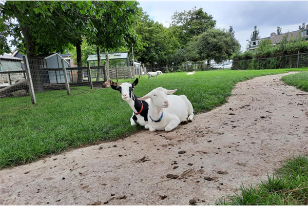 Dieren en kinderen spelen door elkaar heen bij Kinderboerderij De Heuvel!