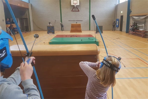 Archery attack is een combinatie van paintball, trefbal en boogschieten. Als je geraakt wordt, doet het gelukkig geen pijn!