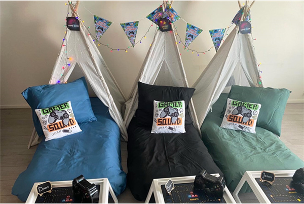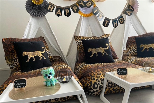 Bij Sweet Dreams Party kun je de complete slaapplekken voor de kids gewoon ophalen. In het pakket zitten onder andere tipi tenten, beddengoed, sierkussens, verlichting en decoratie. Ideaal, de pakketten zijn heel volledig!