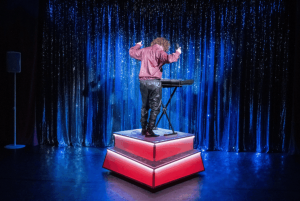 Het beste van mij is een voorstelling over de magie van het theater, hoe je met kleine dingen grote veranderingen kunt creëren en dat je samen vaak meer teweeg brengt, dan wanneer je alles alleen wilt doen. Wacht.. is dat nu de volkszanger die achter de techniek zit, of rent de techniek achter de volkszanger aan…? En hoe kan het ineens sneeuwen op het podium?