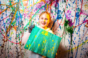 Lekker gooien met verf en tegelijkertijd een mooi kunstwerk maken bij de Fabriek Woerden. Wat een feest!