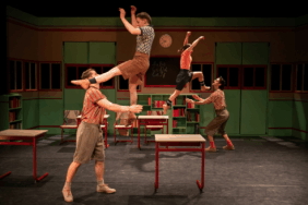vrijdag 6 februari Drie dansers dansen met kleurrijke ballonnen over het toneel van Podium Sprits!