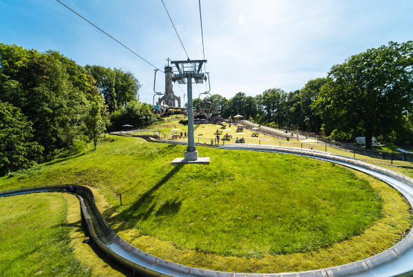 De kabelbaan brengt je op bijzondere wijze naar de top van de berg en daarna rodel je weer naar beneden op één van de twee rodelbanen van meer dan 375 meter. Of geniet van het prachtige uitzicht over de stad Valkenburg, tijdens een spannend spel Adventure Minigolf!