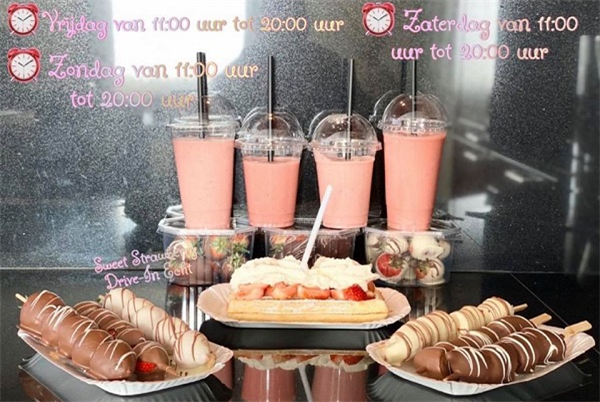 Heerlijke aardbeien omhuld met chocolade en heerlijke smoothies bij de Sweet Strawberry Drive-In in Echt.