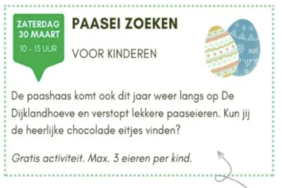Helaas, dit is al geweest. Komen jullie paaseieren zoeken op de Dijklandhoeve?