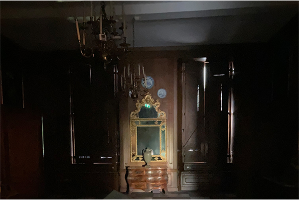 De rondleiding start terwijl het kasteel nog donker is. De luiken zijn dicht, gordijnen omlaag en de kamers nog stil. Stap voor stap worden de luiken geopend en stroomt het daglicht naar binnen. Zo zie je hoe het kasteel zich klaarmaakt voor een nieuwe dag.