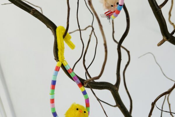 Op zoek naar de kronkelwilgen waar kinderen hun eigen tak vanaf kunnen knippen. Na de pauze kan alles afgemaakt worden en mogen de knutsels in de paastak gehangen worden.