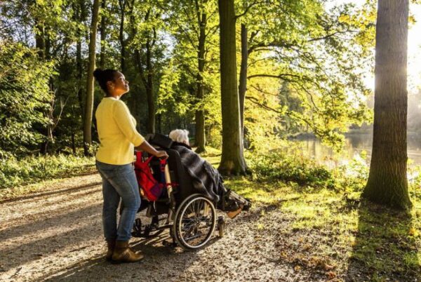 Wandel samen over het verharde pad rond het strand van zwemvijver De Zwarte Dennen!