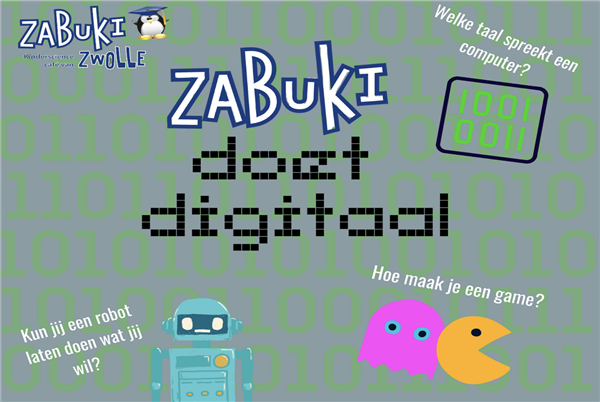 Op woensdag 10 januari doet Zabuki digitaal! Leer van alles over computers, programmeren en robots! Hopelijk zien we je dan!