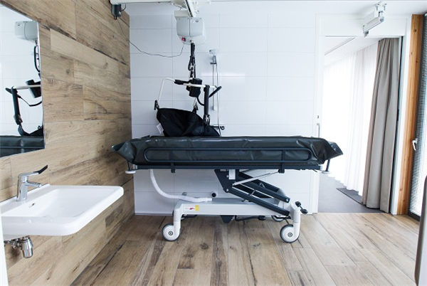 Het huis is voorzien van alle gemakken en hulpvoorzieningen die er maar nodig zijn. Denk hierbij aan in hoogte verstelbare bedden al dan niet met zijpaneel, douche met douchebrancard en/of douchestoel, onderrijdbare wastafel en toilet met opklapbare steunen, een speciaal aangebrachte plafondtilsysteem (met clips) waarmee gasten eenvoudig een transfer kunnen maken van de slaapkamer naar de badkamer of toilet.