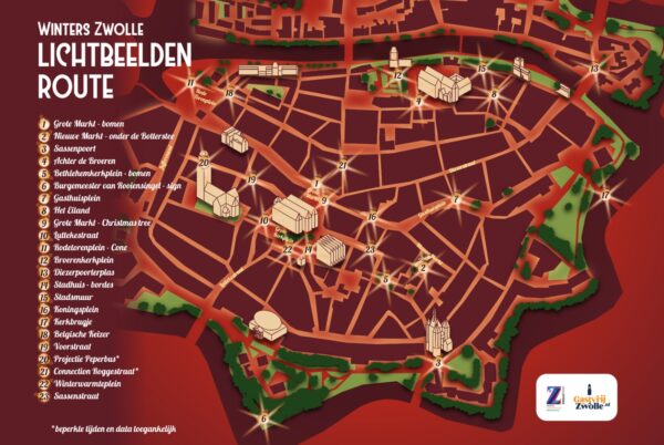 Deze Lichtbeeldenroute is een initiatief van ZwolleFonds en de ondernemers van de binnenstad. De route vind je op de laatste foto.